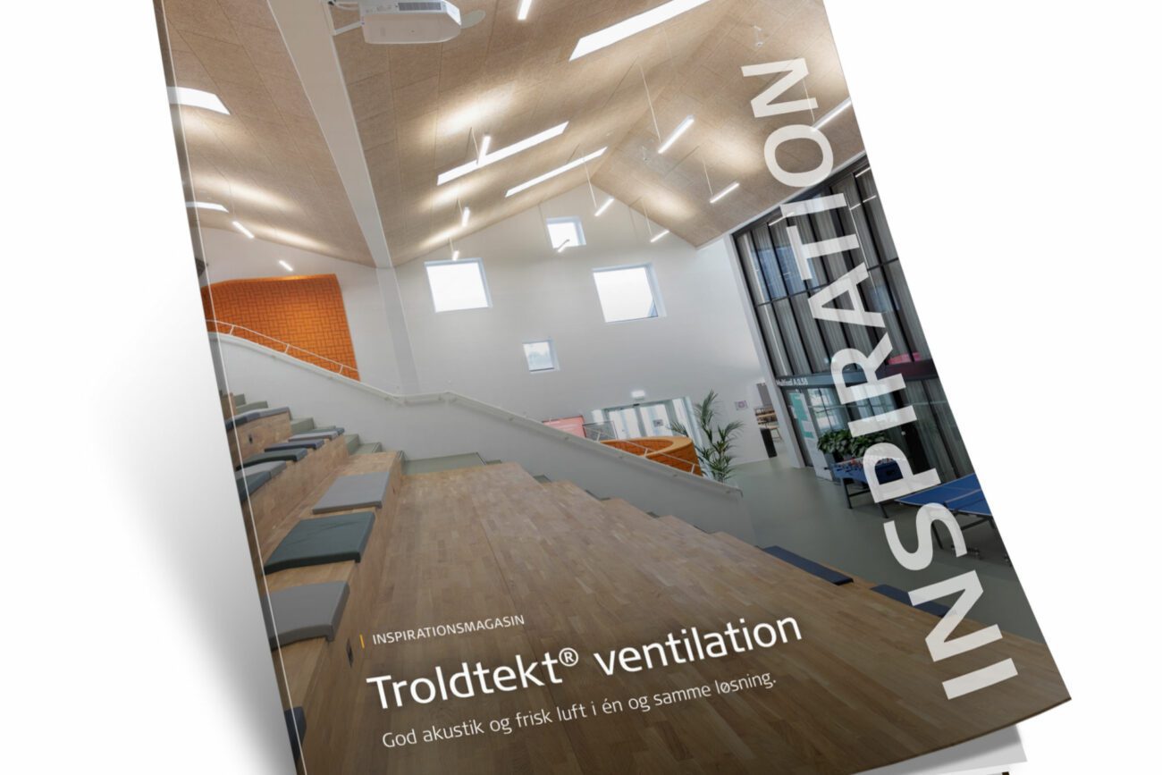 Nu kan du få de prisvindende Troldtekt designløsninger i kombination med Troldtekt ventilation. Resultatet er energieffektiv ventilation, god akustik og et karakterfuldt design – samlet i ét loft, hvor installationerne er skjult.
